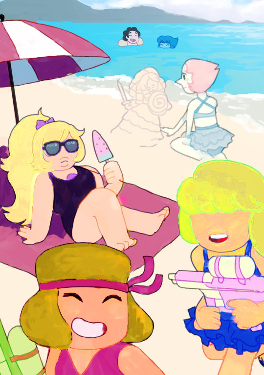 Bieliť Pearl nie je až taká zábava, nakoľko je sama bielej farby pleti, a ani zoštíhľovať na nej veľmi niet čo. Zato sa však hojného bielenia dostalo Lapis lazuli (Lazurit) - zaiste aj preto, že je to jedna z najobľúbenejších postáv seriálu.