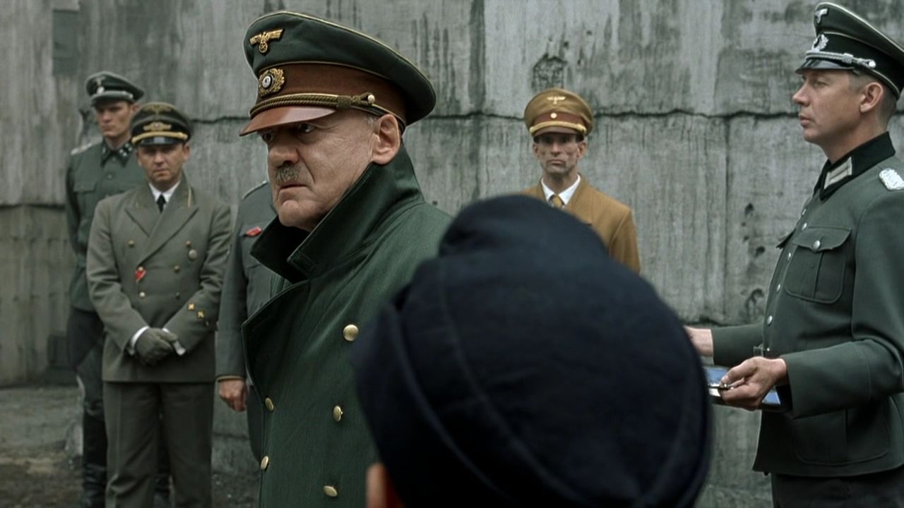 S politikou je spjatý také další snímek, byť se jedná až spíše o následky politické propagandy. V roce 2004 velkou část filmových fanoušků zaskočil německý režisér Oliver Hirschbiegel, který předvedl dosud nevídané filmové zpracování příběhu Adolfa Hitlera. Německý vůdce třetí říše bývá ve filmech vidět poměrně často, rozhodně častěji, než jiní politikové (ostatně i Čech Pavel Kříž si tuto roli zkusil v loňské Lídě Baarové). Málokteré z jeho filmových zpracování se ovšem odvážilo zajít do až tak intimního kontaktu s vůdcem nacistického Německa, jako tomu udělal právě snímek Pád třetí říše, který odkrýval poslední momenty říšského vůdce. Fenomenální Bruno Ganz dokázal i v tak velké konkurenci předvést tuto historickou postavu s takovou vervou, že dodnes jeho ztvárnění nebylo překonáno.